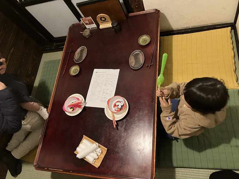 お店のオープン時間に合わせて電話で席を予約して、子連れであることを伝えていたので個室を用意してもらえました。
