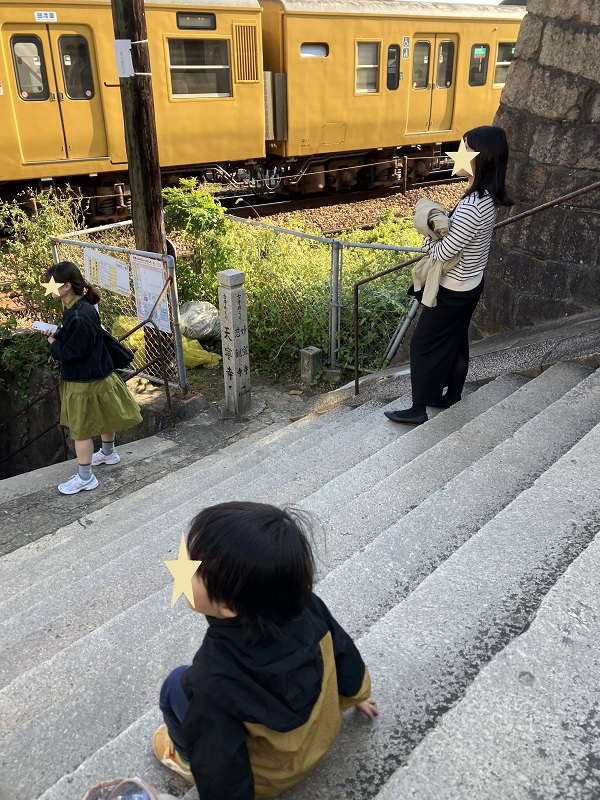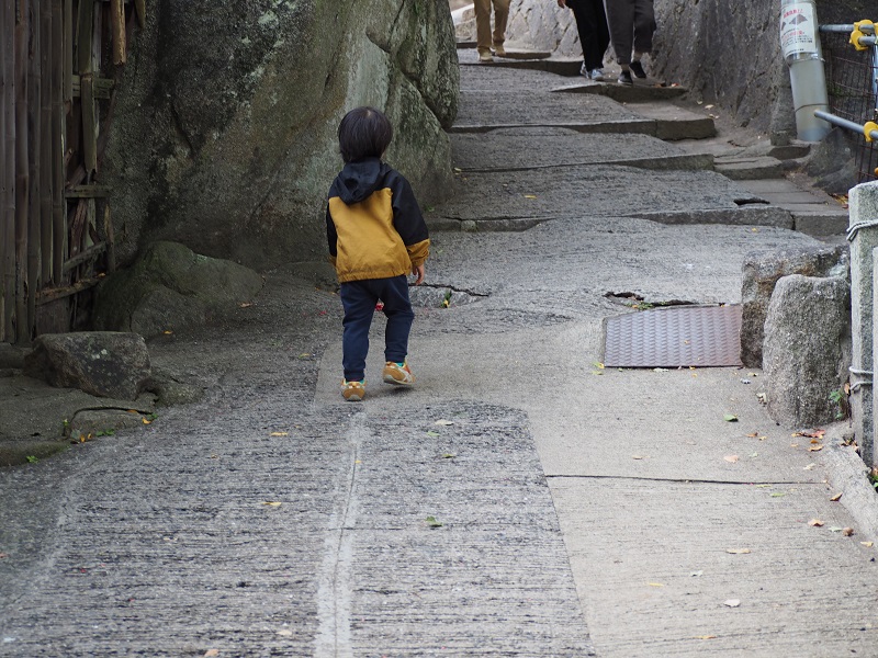 道路や自転車が多い商店街を歩く時は危なっかしくて見ていてヒヤヒヤしたり、時にイライラしてしまいます。でも山頂までの道のりは歩行者ばかりなので後ろから穏やかに見守って歩めます。去年よりも足取りがしっかり進むスピードが速くなっていることに成長を感じたひと時でした。
