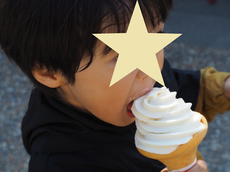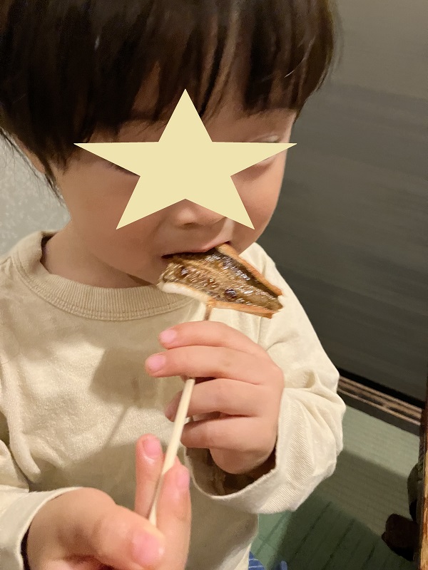 美味しいものセンサーの反応が素早い3歳児。写真を撮ろうと思っていたらすでに一口目を食べ始めてました。