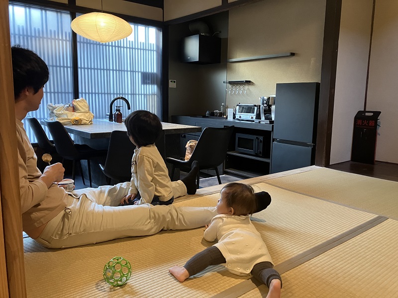 宿のチェックインは無人で、携帯で簡単に出来ます。ウロチョロ動く3歳児と赤ちゃんを抱っこしているのでスムーズに入れるのは嬉しいです。