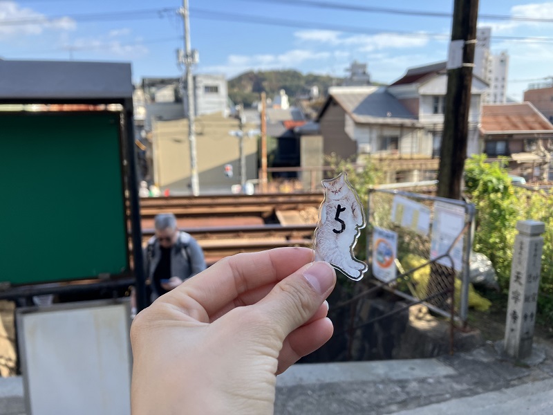 番号札という名の可愛いフミコさん(店主さんの家族の猫さん)と目の前の電車を眺めてゆったり待つのも良い時間。