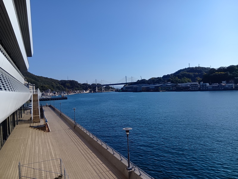 海岸沿いのウッドデッキから見る景色が綺麗です。良き旅のはじまり。