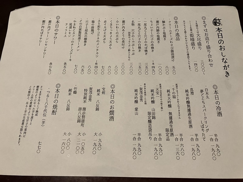 尾道ラーメンを〆にして、地元のお料理を堪能しました。