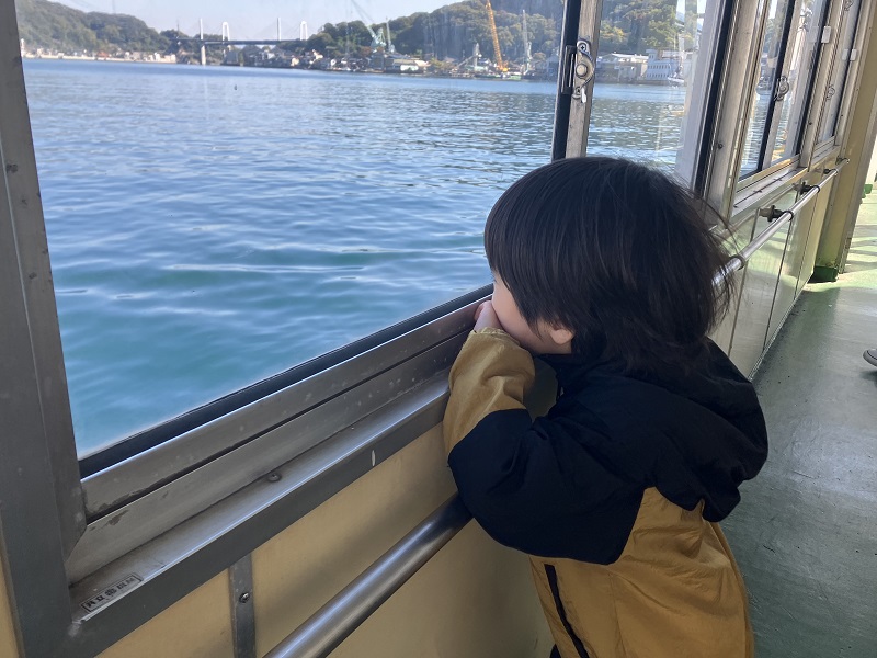 乗り物大好き3歳児リクエストで船に乗って向島へ