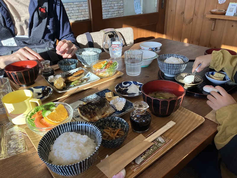 去年は良く食べるので味噌汁とご飯だけでは足りないと思っていたけれど、今年は気分屋の3歳児。おしゃべりに夢中になって手がとまったり、食べると言ったりお腹がいっぱいと言ったりでなかなか難しいお年頃なので、みんなでシェアし合うのが丁度良かったです。(笑)