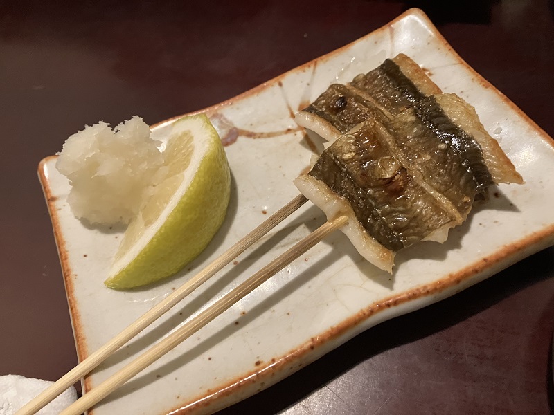 ◎穴子の串焼き。身はフワフワで皮がパリパリ香ばしい香り。