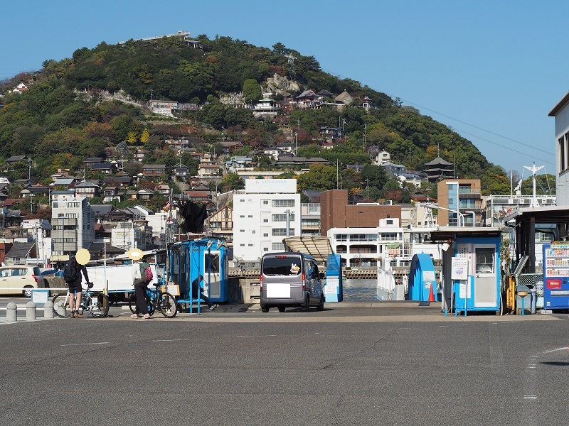 10時半頃。ランチのオープンまで少し時間があったので、船に乗って向島へ。